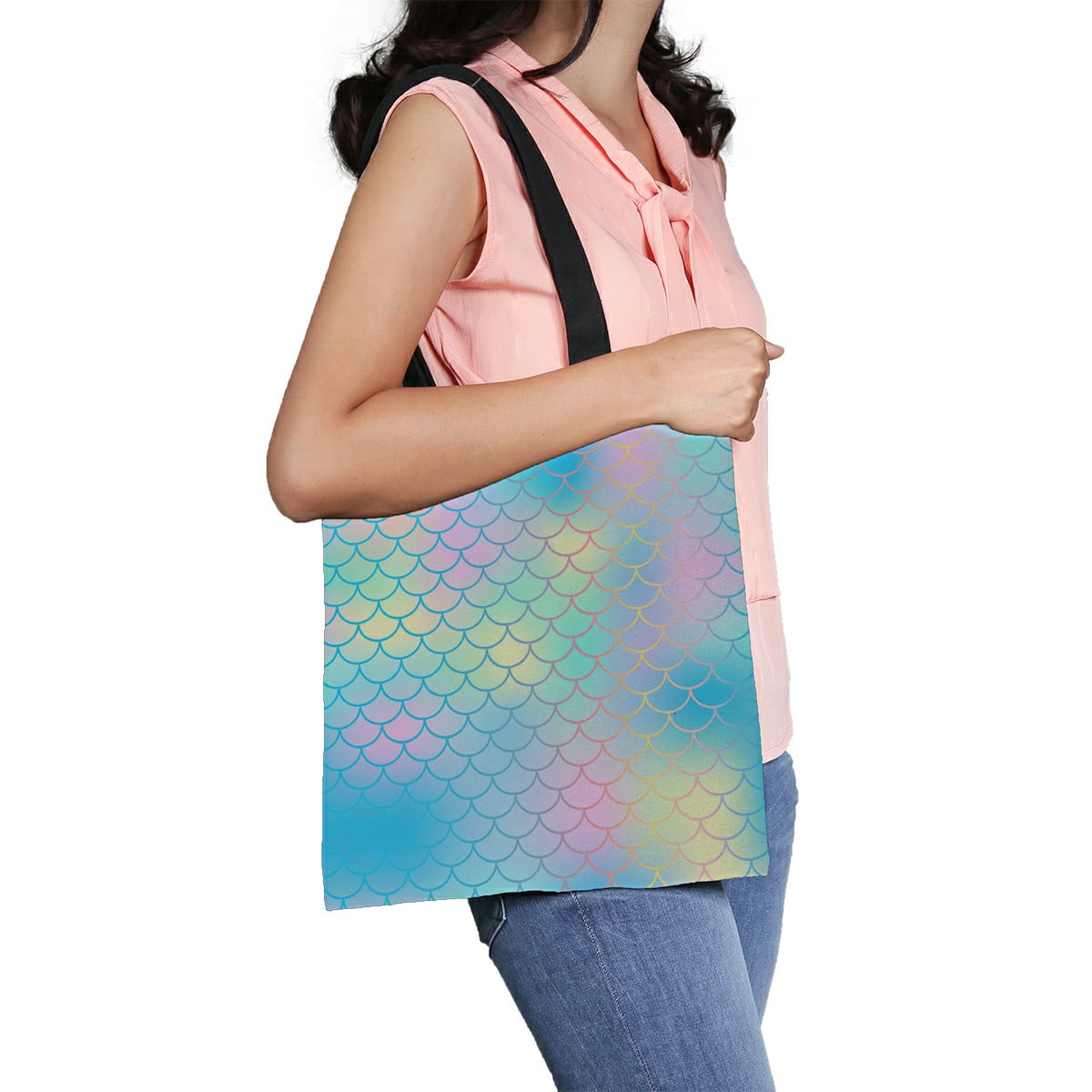 Abphqto Fish Scale Magic Mermaid Tail Canvas Bag Reusable Tote Grocery Shopping Bags Tote Bag 14x16 Inch Walmart Com